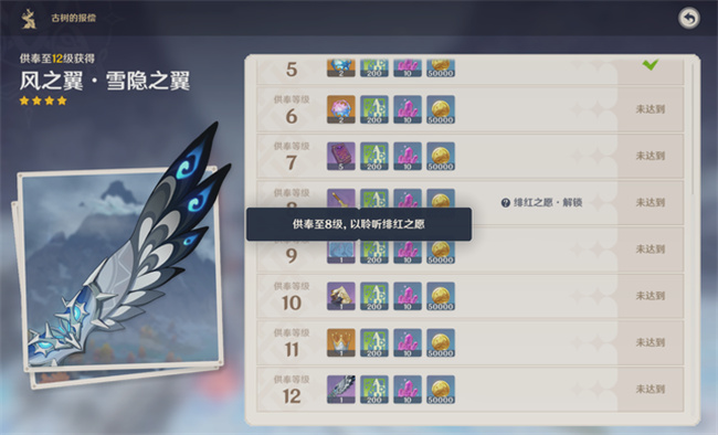 2、在供奉忍冬之树至8级后,可以解锁绯红之愿;