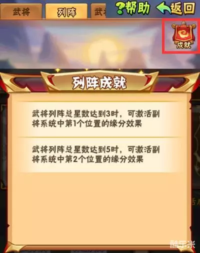 之前少年们一直吐槽的副将位没有缘分加成的问题,在列阵这里完美解决啦~当少年的列阵星级满足3星or5星时,可以激活对应的列阵成就——增加副将位的缘分效果!