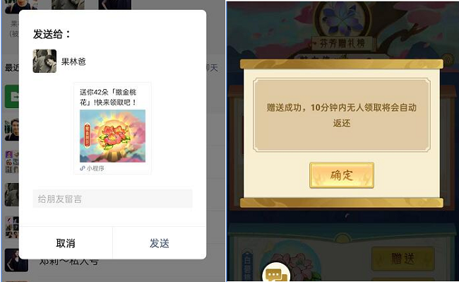 6.就能通过微信,发送给你要出售的好友,提醒好友好友10分钟领取金花,否则系统会退还导游戏系统的邮件中,对方获得金花后就卖花成功啦。