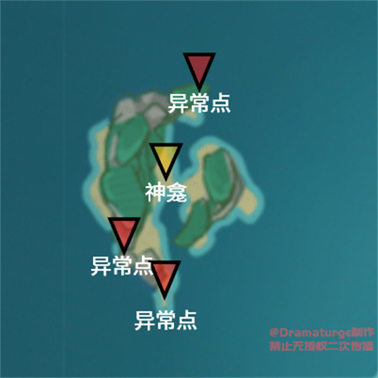 (用元素视野找到三处异常点,用冰/风等元素攻击异常点即可,异常点位置如下)