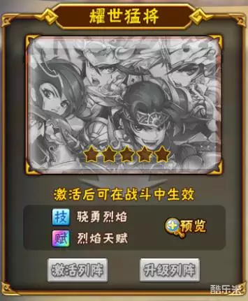 首页-武将-列阵页签,即可看到【耀世猛将】图鉴啦。